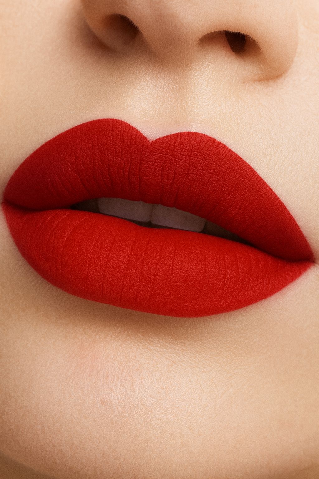 Blushing is a vibrant matte red that glides on smooth and stays all day, no smudge, no fade, just confident color.