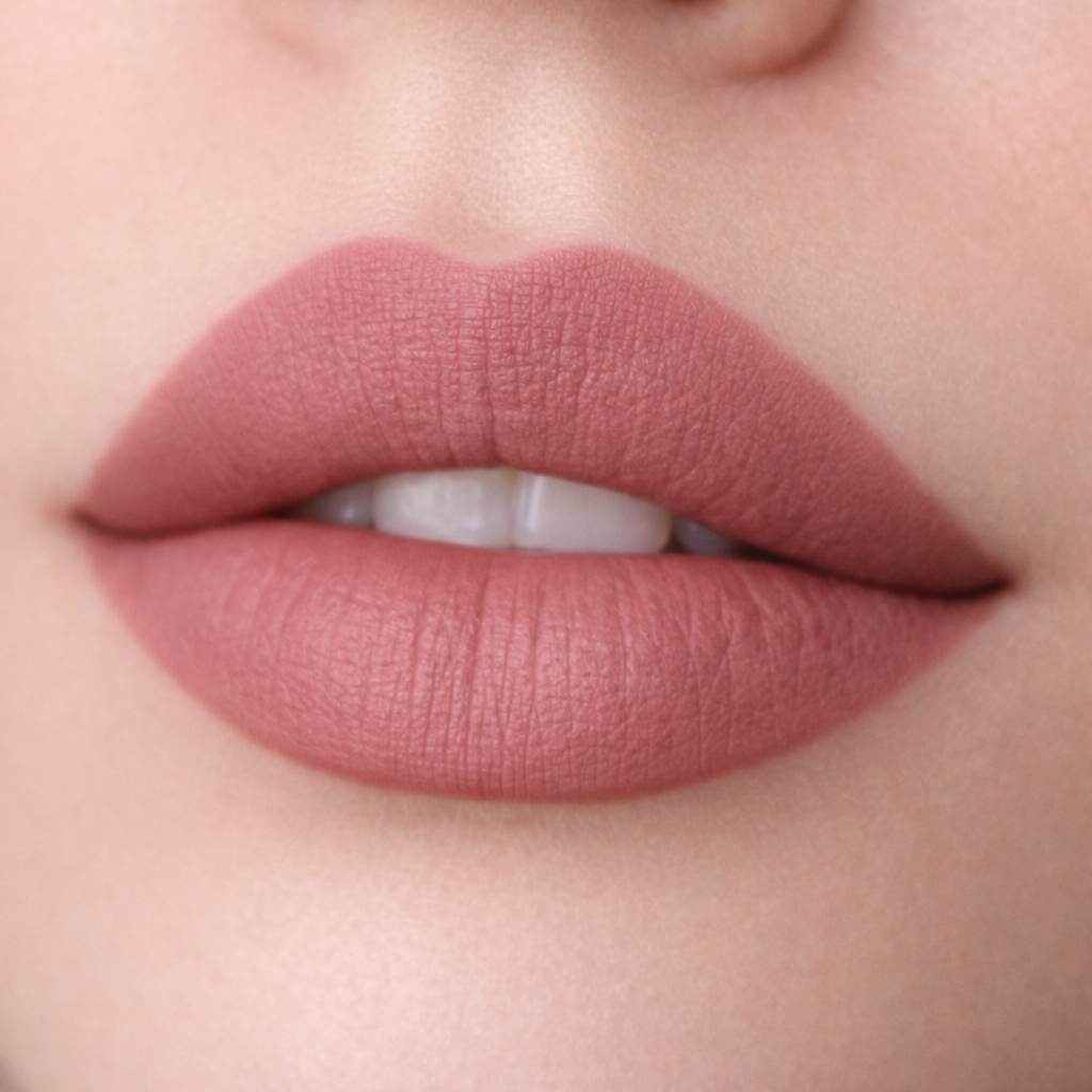 A soft rosy nude matte lip color that enhances your natural beauty with effortless elegance. Smooth, lightweight, and richly pigmented for comfortable all-day wear.